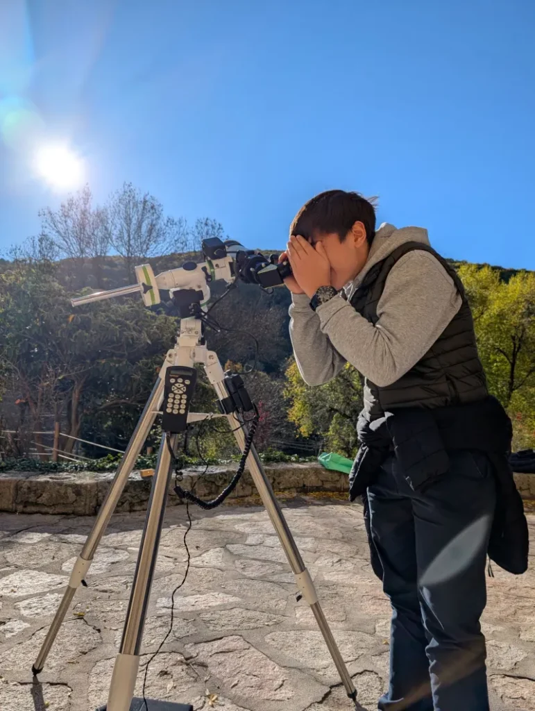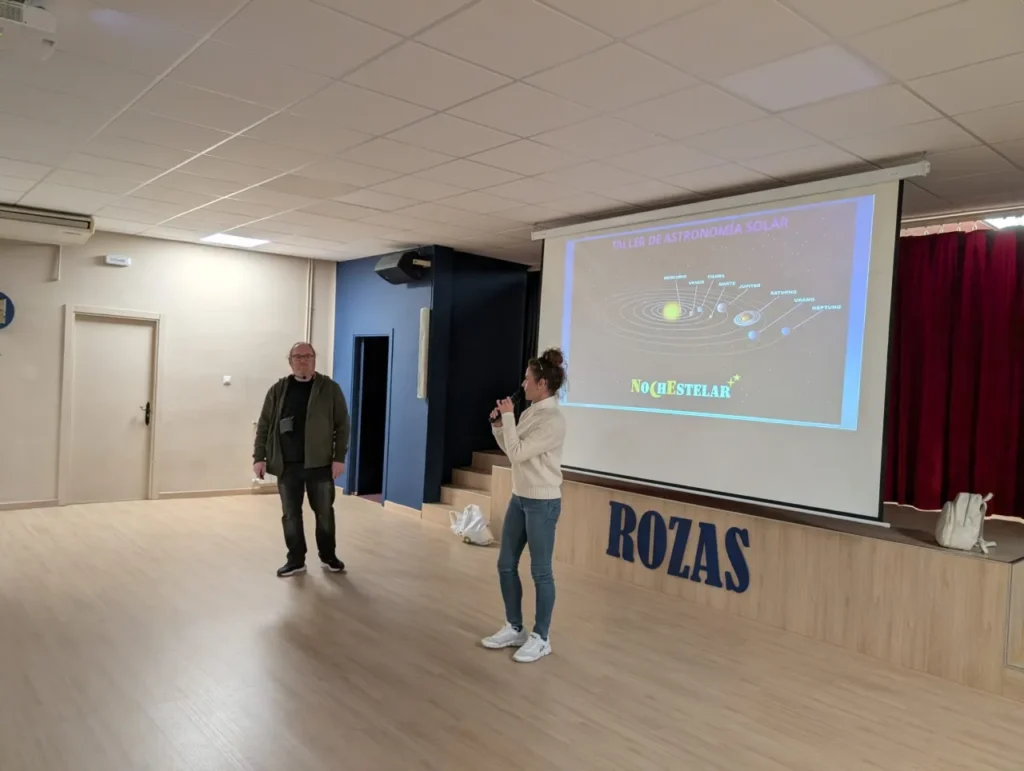 - El reto del astrónomo, una observación solar a cargo del equipo de Nochestelar, donde los alumnos pudieron contemplar manchas solares, llamaradas y tormentas solares mediante telescopios especializados.